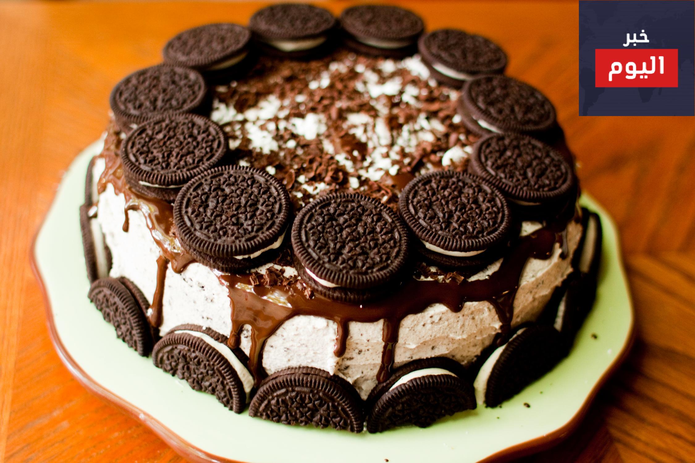 4- يزين بالكريمة وبقطع بسكويت الاوريو.
