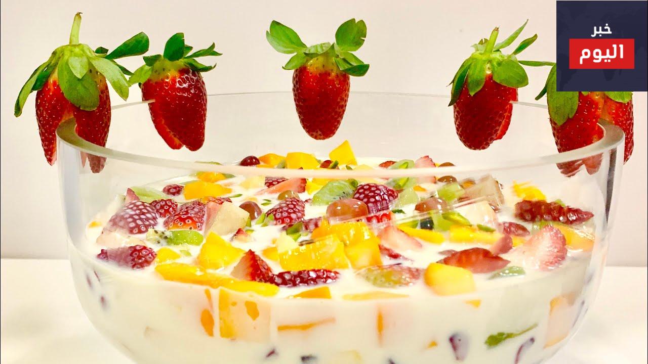 وصفة سلطة فواكه بالحليب والقشطه الرائعة من المطبخ العالمي بالخطوات الواضحة، حضريها بمطبخك ولا تنسي مشاركتنا بالتعليقات!