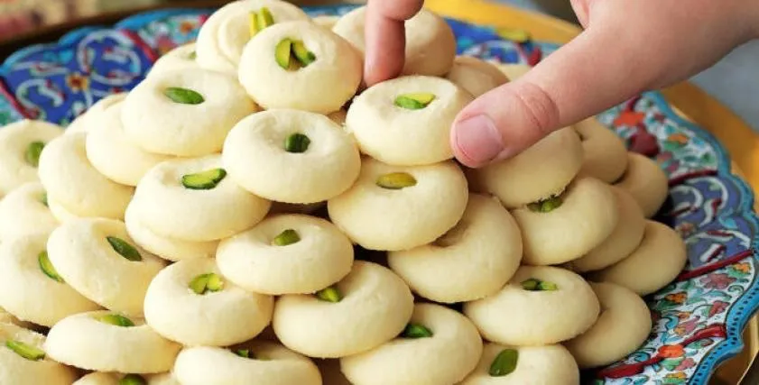 ٢. يشكل العجين بنفس الوقت ويشوى لمده 10 دقائق وبعد ان يبرد يزين بالشوكوﻻ والفستق.